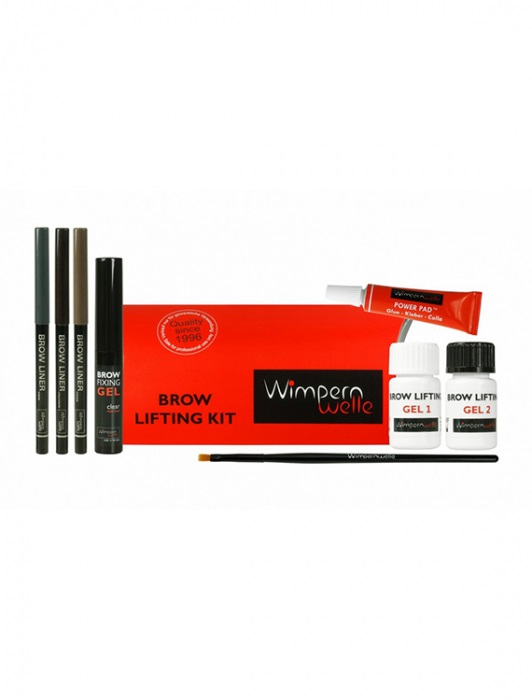 • Kit-ul conține 10 produse: gel 1 + gel 2( în flacon de 7ml, ideal pentru 15 aplicări), 1 adeziv, 1 pensulă, 1 fluid laminare profesional cu 25 buc microbrush, 3 x creion de sprâncene, 1 x gel de fixare sprâncene -BROW FIXING GEL