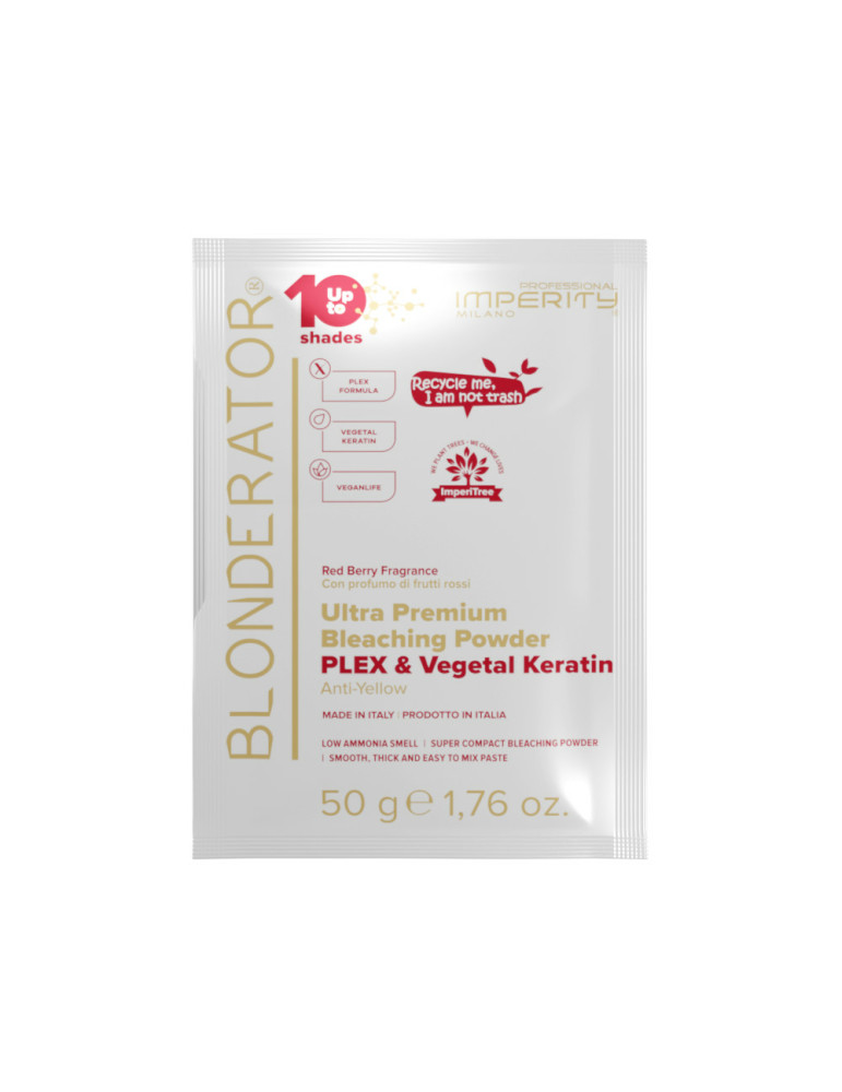 Pudră decolorantă ultra premium Blonderator, potrivită pentru decolorarea cu până la 10 nuanțe.